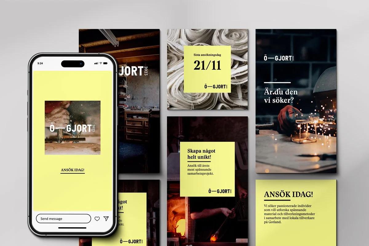 SPOK Gotland anlitade oss för att ta fram grafisk design och varumärkesidentitet för två aktiviteter inom satsningen på lokal produktion. Vi skapade logotyp, färgpalett och grafiska element för projektet Ö-gjort – ett initiativ där formgivare och tillverkare matchas för att utveckla nya idéer och produkter. Resultaten ställs ut och visar styrkan i lokalt hantverk och produktion på Gotland.